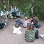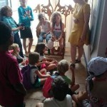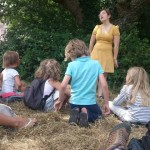 L’après-midi le Centre de l’Imaginaire Arthurien nous a ouvert ses portes. Après une visite ponctuée d’histoires nous avons goûter sous un chêne où un conteur captait la foule.