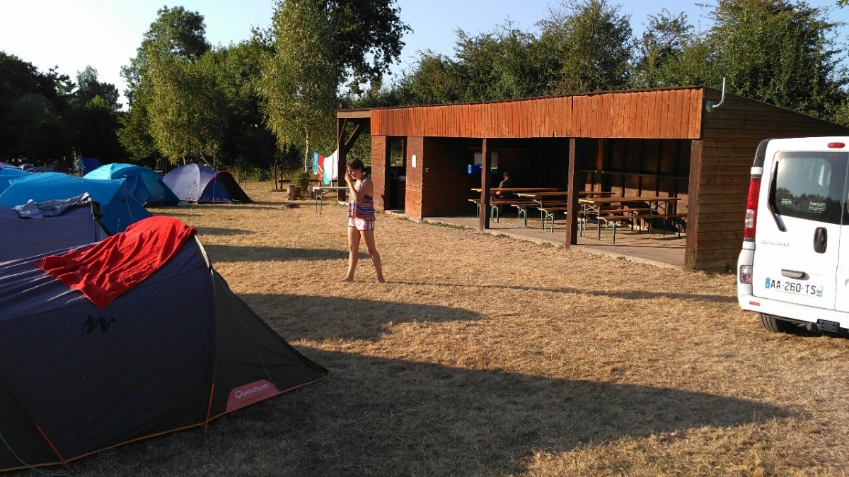 Nous sommes arrivés hier vers 12h. Montage très facile car nous avons à notre disposition un espace couvert avec tables, banc et un espace cuisine.