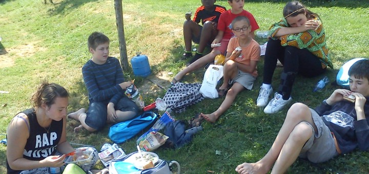 Arrivée vers 11h. Nous avons dû patienter au niveau du pont. Les enfants sont très efficaces dans le montage des tentes. Élaboration des menus, courses et piscine cet après-midi ! Ce soir, soirée p’tits...